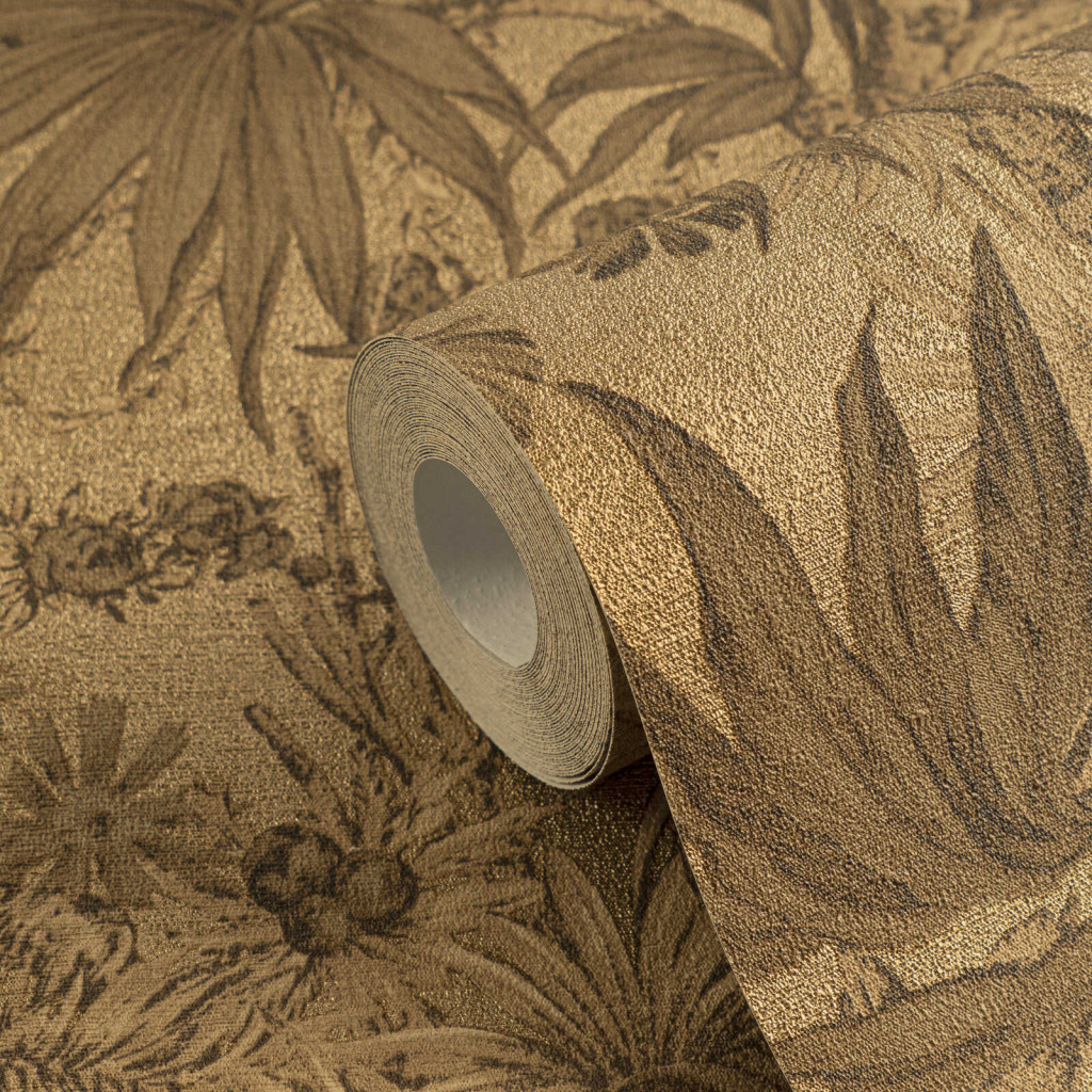 AS Creation History of Art 2, vlies, vinyl anyagú, barna, arany színű, ágas, leveles, Modern tapéta