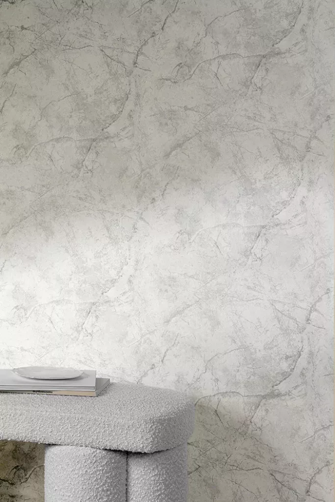 Grandeco Textured Vibes, vinyl, vlies anyagú, fehér, szürke, ezüst színű, márványos, Modern, Industrial tapéta