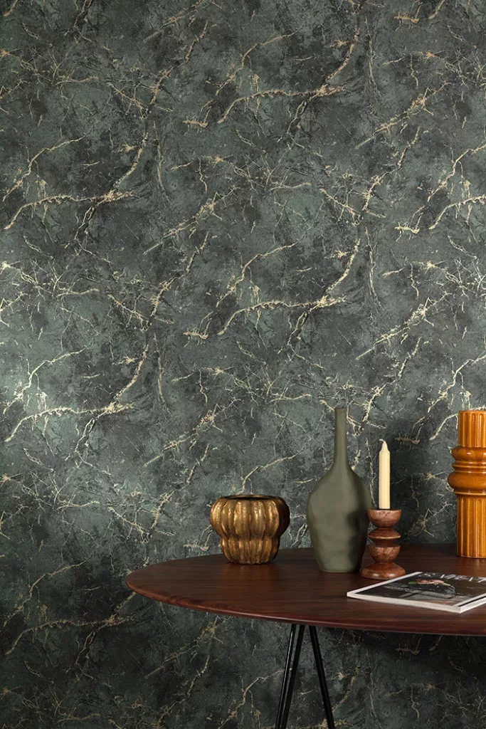 Grandeco Textured Vibes, vinyl, vlies anyagú, zöld, arany színű, márványos, Modern, Industrial tapéta